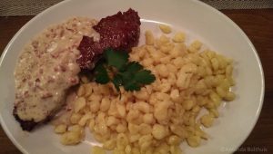 Veel gerechten in Oostenrijk worden geserveerd met friet of aardappelen, maar soms kun je er ook spätzle bij bestellen. Dit zijn een soort hele kleine stukjes pasta.