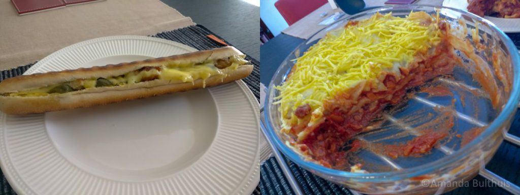 We aten vervolgens op donderdagavond ook weer iets wat eigenlijk niet gepland was. Normaal gesproken zouden we de boodschappen die dag hebben laten bezorgen, maar omdat ik niet thuis kon werken die dag hebben we dat verplaats naar vrijdag. Het was voor donderdagavond dus even improviseren. Ik maakte macaroni met een saus van ui en tomaat en wat bleekselderij en paprika die we nog in huis hadden.