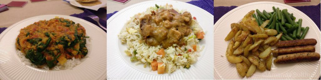 Doordeweeks waren de gerechten die voorbij kwamen dus wat gemakkelijker. Maandagavond maakte ik dahl van rode linzen met spinazie. En op dinsdagavond aten we nasi met vegetarische saté van Mora.